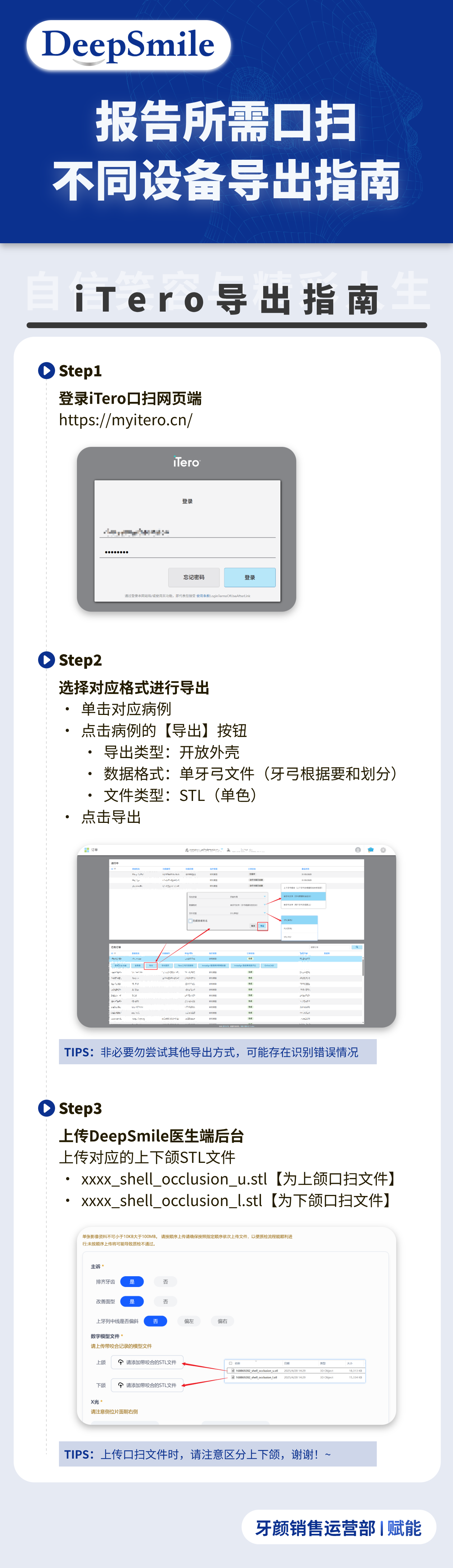为保障 iTero 口扫数据顺利导出并上传至 DeepSmile 医生端后台,以下为具体操作步骤: